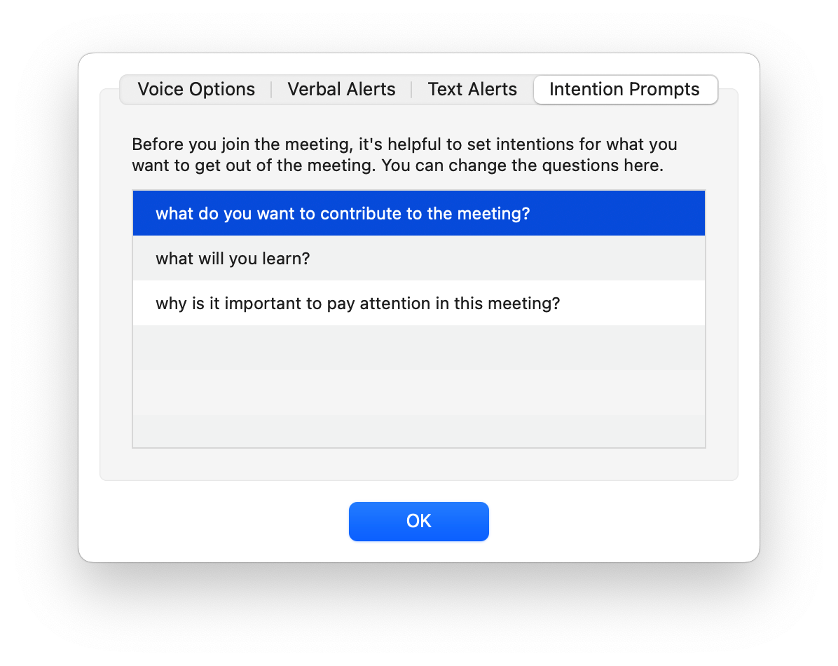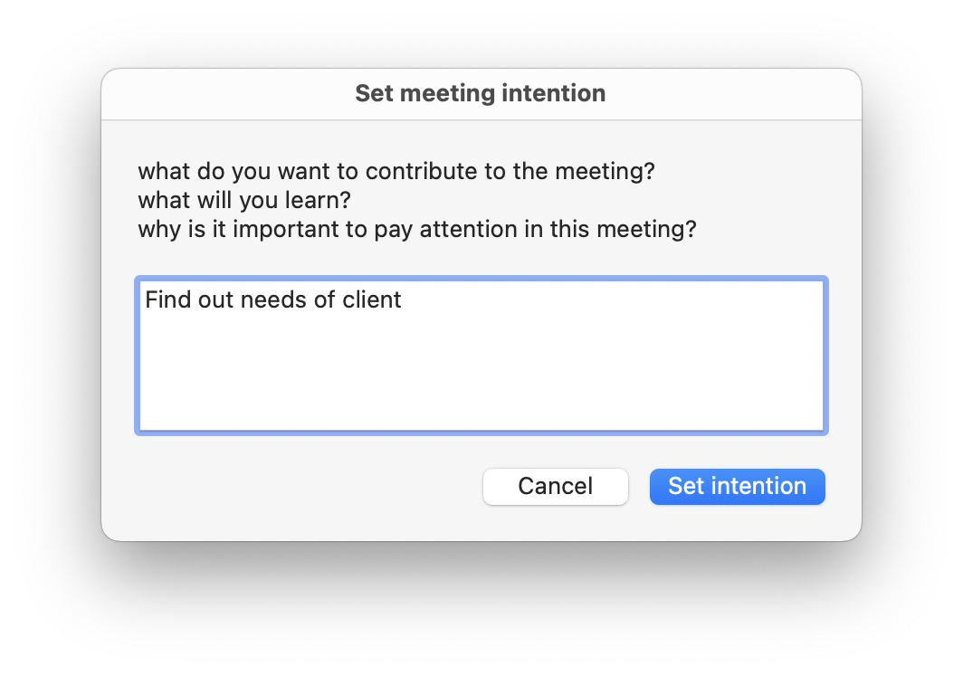Configuring the meeting intentions