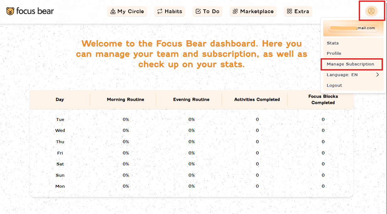- Log in to your Focus Bear account through the dashboard: https://dashboard.focusbear.io/