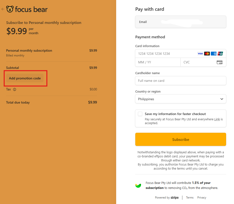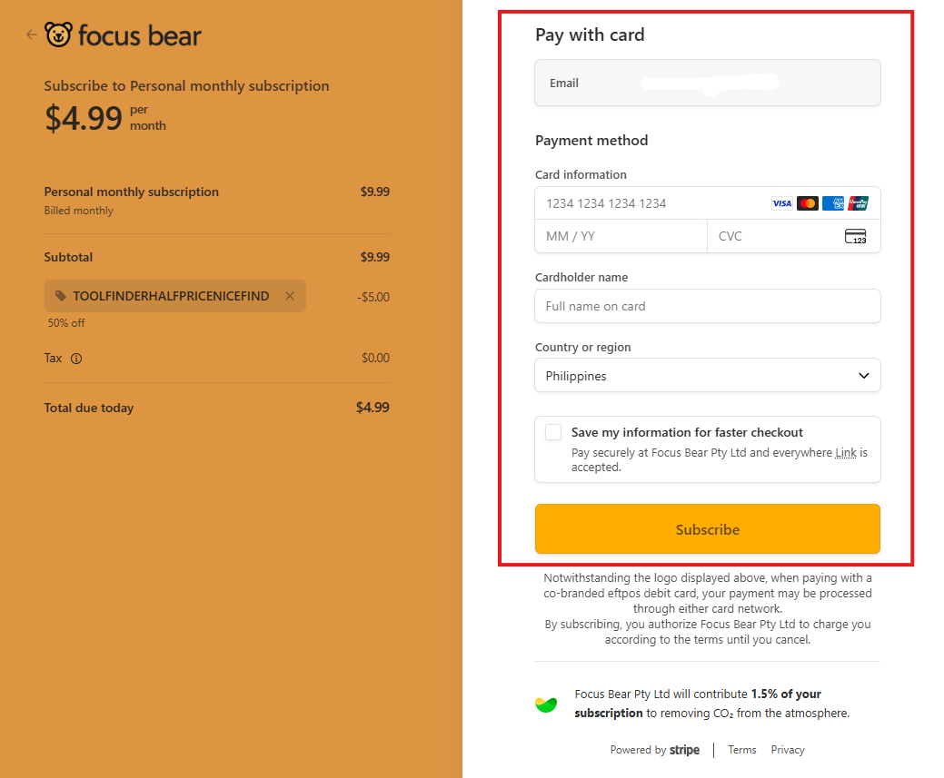 - Complete the remaining fields, including your card details, to finalize and activate your subscription.